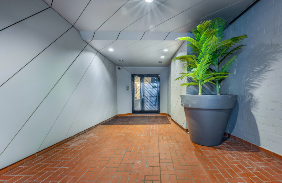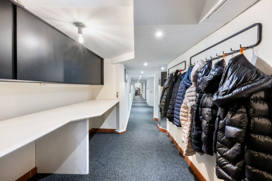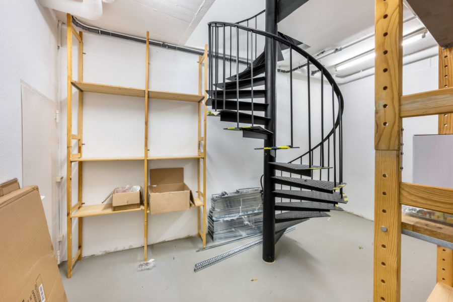 Die ca. 421 m² große Gewerbefläche erstreckt sich über drei Ebenen (Parterre, Tiefparterre und Hochparterre) und bietet flexible Gestaltungsmöglichkeiten. Der strapazierfähige PVC-Boden garantiert eine robuste und pflegeleichte Nutzung. Ein separates Klimaanlagen- und Lüftungssystem sorgt für eine angenehme Raumtemperatur, die auf die Anforderungen des Gewerbebereichs abgestimmt ist. Im Kellergeschoss befinden sich Sozialräume, ein Bürobereich sowie Lagerräume, die für effiziente Arbeitsprozesse konzipiert sind. Das Kellergeschoss umfasst einen Bürobereich mit maßgefertigten Einbaumöbeln, Technik- und Abstellräume sowie PKW-Stellflächen der Tiefgarage. Die Büroräume sind mit Teppich ausgelegt, während die restlichen Bereiche, einschließlich der Tiefgarage, vollständig gefliest sind. Der Keller bietet direkten Zugang zur Gewerbefläche, zum Treppenhaus sowie zum Außenbereich und verbindet auf diese Weise alle Hauptbereiche des Hauses effizient.