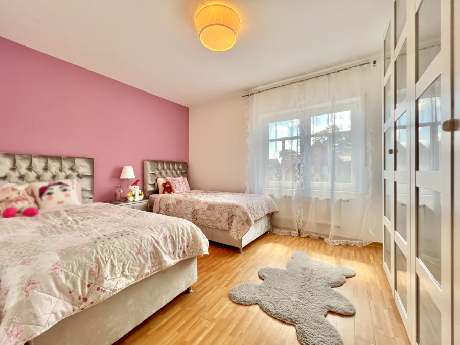 Diese Doppelhaushälfte mit Carport, Geräteraum sowie einer Wohnfläche von ca. 147 m² wurde 2006 errichtet und bietet ausreichend Platz für die Familie, besonders durch den Wohn- und Essbereich und die 3 Schlafzimmer im Dachgeschoss. Die vorhandene Fußbodenerwärmung (Bad, Wohn- / Esszimmer und Diele), ein Kaminanschluss, der eigene uneinsehbare Garten mit Terrasse sowie Markise in Süd-Lage runden das Angebot ab.