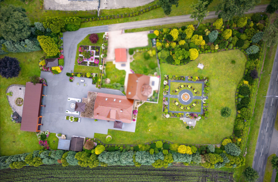 - 9.802 m² Grundstück, parkähnlich angelegter Garten, Garagen, Remise