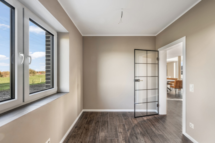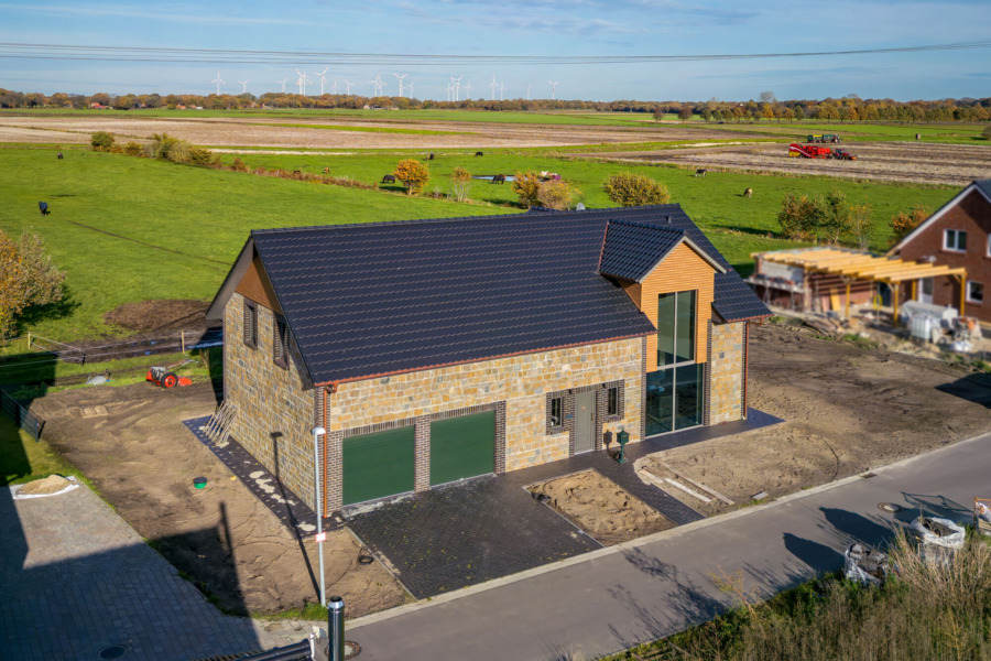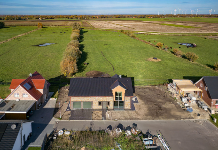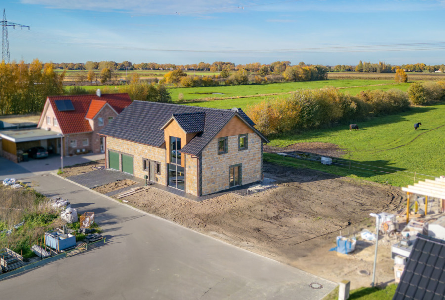 Design trifft Feldrandlage: Neubau (2024) mit Galerie, Wärmepumpe & Doppelgarage in Twist – Neuringe