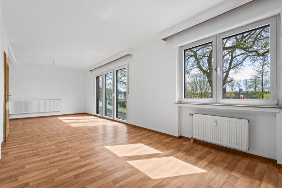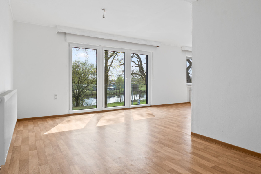 Aktuell ist die zur Ems gelegene Erdgeschosswohnung vermietet. Die Obergeschosswohnung steht leer – eine Neuvermietung erfolgt bewusst nicht vor dem Verkauf. Die zweite Erdgeschosswohnung im Hinterhof erfordert vor einer erneuten Nutzung noch Arbeiten am Flachdach.
