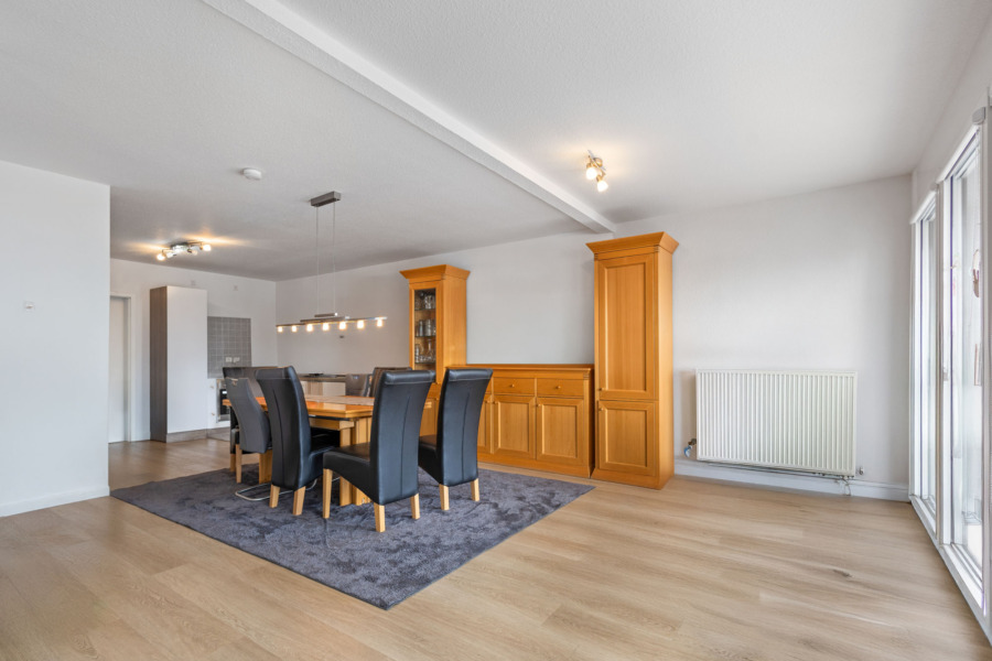 - Obergeschoss (ca. 144,04 m²): Wohn- und Esszimmer, separates Wohnzimmer, zwei Schlafzimmer, Küche, Tageslichtbad, Gäste-WC, Hauswirtschaftsraum mit Anschlüssen sowie eine großzügige Dachterrasse.