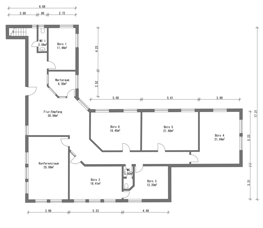 Die bislang gewerblich genutzte Einheit befindet sich im 1. Obergeschoss eines Wohn- und Geschäftshauses in Meppen. Das durch ein Architekturbüro ausgearbeitete Nutzungskonzept zeigt die Entwicklung von vier eigenständigen Wohneinheiten auf einer Ebene und schafft damit eine klare Grundlage für die weitere planerische Ausrichtung.