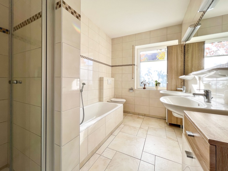 • Tageslichtbad mit ebenerdiger Dusche, Badewanne und Doppelwaschbecken